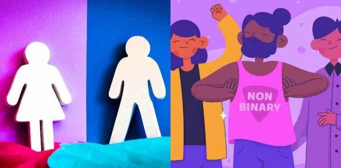Non-binary adalah istilah umum yang menggambarkan identitas gender yang tidak ekslusif maupun spesifik laki-laki atau perempuan. Sementara transgender mengacu pada seseorang yang tidak mengidentifikasi dengan jenis kelamin mereka saat lahir. Misalnya seseorang yang dilahirkan dengan jenis kelamin laki-laki, ia kemudian meyakini bahwa jenis kelaminnya yang sebenarnya adalah perempuan. Hingga akhirnya mengubah identitas gendernya sebagai perempuan. Begitu pun sebaliknya.