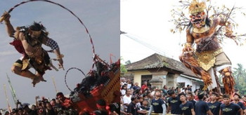 Biasanya, boneka raksasa ini akan diarak setelah upacara pokok selesai dengan diiringi irama gamelan khas Bali yaitu bleganjur patung. Sebelum acara dimulai, para peserta upacara biasanya melakukan minum-minuman keras tradisional (arak).