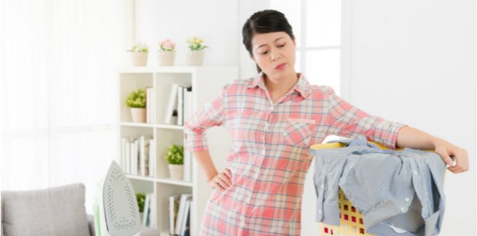 Pastikan Bunda membungkuk dan jongkok dengan posisi yang pas agar punggung Anda tidak cedera. Kemudian, berdirilah dengan tegak sebelum mengangkat kedua tangan untuk menjemur dan menjepit pakaian.