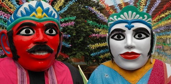 Sedangkan yang perempuan wajahnya berwarna putih, bibirnya bergincu merah, dan kebayanya selalu berwarna terang dengan selendang melintang di salah satu bahunya. Dan satu lagi, badannya ternyata lebih besar dari yang laki-laki.