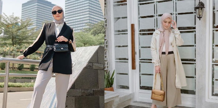 Pilihlah setelan kerja dengan atasan blazer favorit Parents. Setelah itu, pakai inner warna cerah dan padukan dengan hijab berwarna netral. Untuk tas, Parents bisa mempermanis penampilan dengan tas pinggang bergaya klasik. Penyuka gaya sleek and professional bisa contek gaya yang satu ini!