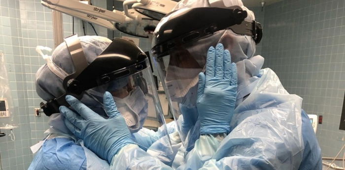 Cayer dan Brock adalah salah satu staf pertama yang secara sukarela bekerja di tim Airway Anestesi COVID-19. Hal ini disampaikan Hubbard pada Health. Foto di atas menunjukkan mereka pada hari pertama mereka sebagai tim.