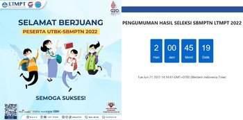 Hasil SBMPTN 2022 akan diumumkan 23 Juni 2022. Hasil UTBK gelombang 1-2 SBMPTN 2022 ini dapat mengakses laman utama LTMPT.
