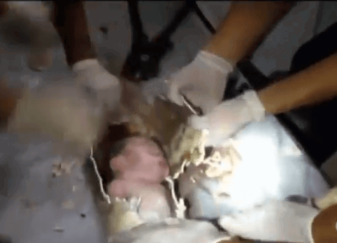 Akhirnya potongan pipa ini harus dibawa ke rumah sakit dan dipotong sedikit demi sedikit bersama dengan tim medis. Banyak orang yang merasa terkejut karena bayi tersebut masih bisa dikeluarkan dengan selamat. Penyelamatan yang dilakukan dari pemotongan pipa hingga membuka pipa ini dilakukan kurang lebih satu jam lamanya.