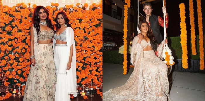 Mengutip PureWow, ia mengenakan rok bermotif bunga karya perancang Arpita Mehta yang dipadukan dengan kemben. Tak ketinggalan, Priyanka juga melengkapi penampilannya dengan kalung dan gelang ukuran besar khas India.