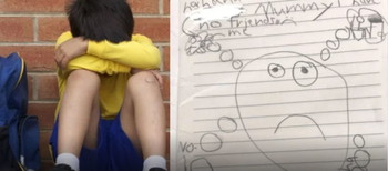“Suatu hari, dia membuat gambar ini saat merasa tertekan karena di sekolah tidak ada yang mau bermain dengannya,” tulis sang ibu.