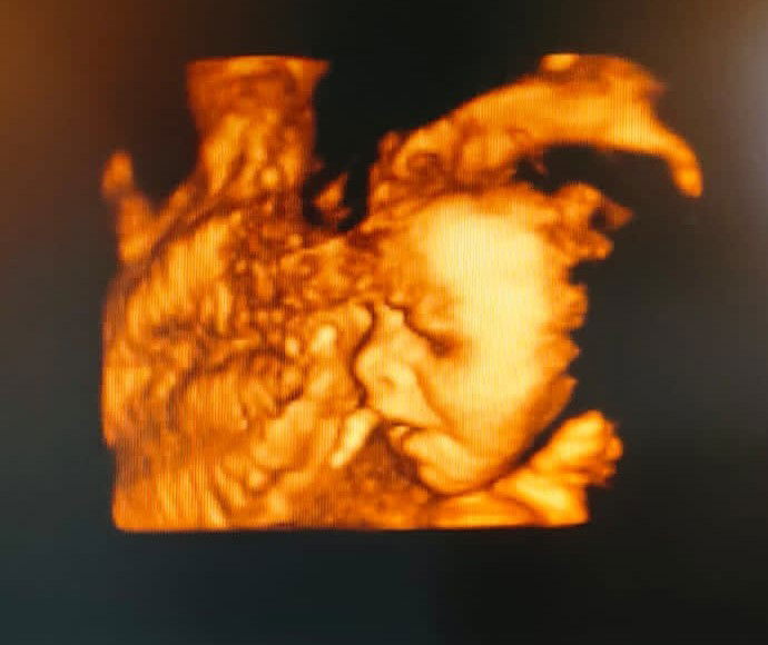 Setelah tahu positif aku periksa ke dokter kandungan. Dari hasil USG usia kandungan tujuh minggu, sudah terlihat kantung janin dan titik kecil banget, dokter minta untuk periksa dua minggu lagi. Deg-degan selama nunggu dua minggu. Dan Alhamdulillah dua minggu kemudian sudah ada detak jantung dan adik janin semakin besar, bukan lagi titik kecil.