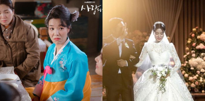 Mengenakan gaun putih berenda dan rambut dihias dengan mahkota, pemain drama Crash Landing On You ini tampak anggun dan elegan di hari pernikahan.