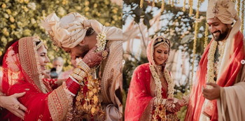 Dalam unggahan foto pernikahan Katrina Kaif dan Vicky Kaushal di Instagram, mereka berdua menampilkan foto yang sama dan caption yang sama pula.