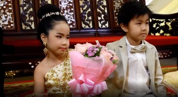 Pasangan pengantin cilik itu adalah Gitar dan saudara perempuannya Kiwi, keduanya berusia enam tahun, mereka berdua dipestakan dalam sebuah pesta pernikahan mewah di Thailand dengan harga setara dengan ribuan pound.