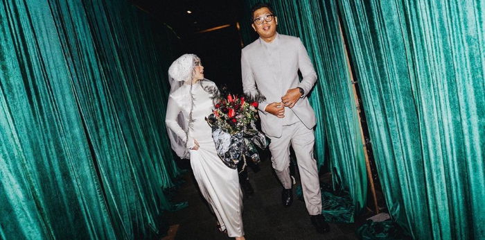 Di tengah kemegahan Hallf Patiunus yang diselimuti tirai toska dan aksen perak, Pria mengikat janji dengan perempuan berusia 25 tahun itu di hadapan para hadirin.
