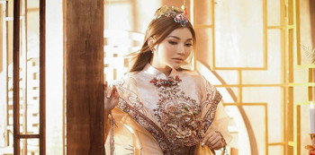 Layaknya ciri khas perayaan Imlek, pastilah aksen dengan warna merah dan emas sangat kuat. Tapi dalam pemotretan yang dilakukan Sarwenda, ia tak sama sekali menggunakan pakaian berwarna merah. Meskipun begitu, nuansa cokelat dan emas tetap memberikan keanggunan pada kaka ipar Jodi Onsu ini.