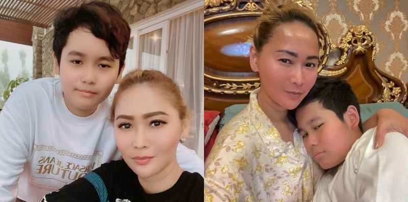 Keduanya beberapa kali kompak memakai baju yang mirip meski beda warna dan motif. Kecantikan sang mama masih terpancar di usia 43 tahun.