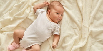Posisi badan terlentang dan salah satu tangan merentang, sementara salah satu tangan menekuk. Kepala si kecil menoleh ke sisi yang sama dengan lengan mereka.