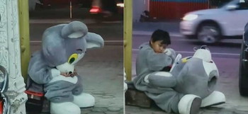 Foto Rehan si Badut Jalanan saat sedang istirahat karena kelelahan. Sumber: Instagram/@rhmadii__