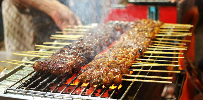 Tidak suka kambing? Di sini juga tersedia sate ayam yang tak kalah lezatnya lho, Parents!