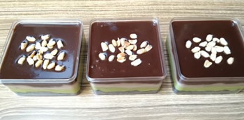 3. Untuk lapisan ketiga yaitu mousse cokelat, pertama-tama kocok whipped cream menggunakan mixer sampai kaku. Sisihkan dulu. Kemudian masak susu cair, susu cokelat, dan agar-agar sampai cokelatnya mencari dan airnya mendidih. Matikan kompor kemudian tunggu dulu sampai mendingin. Setelah mendingin campurkan dengan whipped cream yang tadi sudah dikocok, aduk sampai tercampur rata. Masukkan ke dalam box sebagai lapisan ketiga, ratakan.