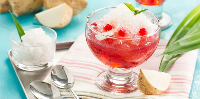 - Sajikan kopyor bersama alpukat, nangka, saus santan, sirup dan es serut