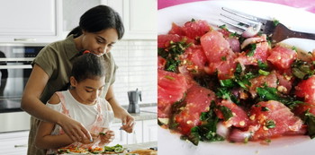 Sebagai informasi tambahan nih Parents, daging ikan tuna sebaiknya dipotong menyerupai bentuk dadu. Dan untuk menghilangkan bau dan rasa amisnya, daging ikan yang telah dipotong perlu dilumuri jeruk cui dan garam terlebih dahulu.