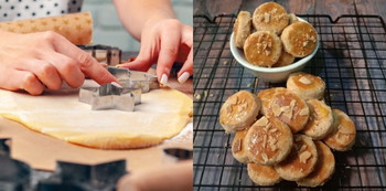 - Keluarkan dari kulkas, giling dan cetak. Susun di loyang yang sudah dialasi kertas baking.