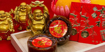 Makanya, kue keranjang selalu ada saat sembahyang dan jamuan makan saat Imlek.