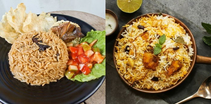 Nasi ini terbuat dari beras basmati yang berasal dari India dan Pakistan. Beras tersebut akan dimasak bersama kaldu daging kambing, serta berbagai rempah seperti cengkeh dan kapulaga.