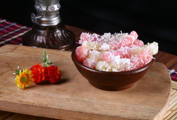 5. Kukus kelapa parut dan garam selama 10 menit.