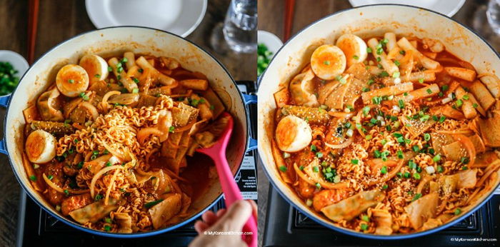 - Tunggu hingga mi matang, angkat dan hidangkan dengan taburan daun bawang.Rabokki siap dinikmati selagi hangat!