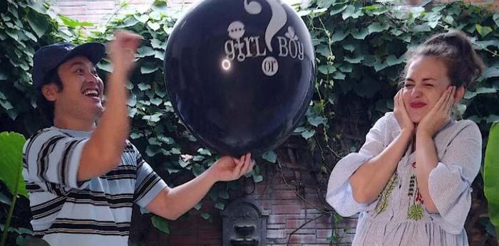 Setelah memasang dekorasi, pasangan ini memompa balon yang telah diisi dengan kertas bertuliskan jenis kelamin bayi yang sedang dikandung Rianti. Sebenarnya pasangan ini telah mengetahui jenis kelamin si buah hati sejak usia 10 minggu di dalam kandungan.