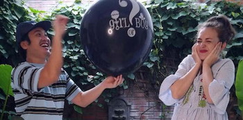 Setelah memompa balon bertuliskan Boy or Girls, Cas bersiap meletuskan balon. Setelah balon tersebut diletuskan terungkap jenis kelamin anak pertama mereka,