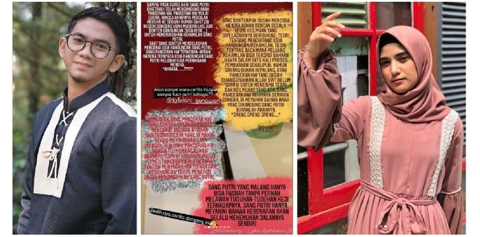 “Sampai pada suatu hari sang putri diketahui telah mengandung anak pangeran kw. Pangeran kw mulai gusar, hingga akhirnya pergilah mereka ke sebuah rumah sakit (di negeri dongeng sudah modern lho ada dokter kandungan juga hehe) untuk memeriksakan sang putri,” tulisnya pertama-tama.