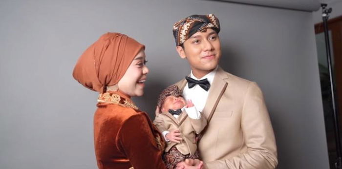 Dalam sesi foto itu, Rizky Billar juga membuat raut wajah imut seperti sang anak yang tengah tertidur. Mereka berdua terlihat kompak mengenakan baju adat Sunda dengan warna senada.