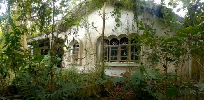 Dari depan, rumah ini sudah terlihat angker. Apalagi, cat temboknya sudah memudar dan banyak dihinggapi lumut. Pilar-pilar pendek menyangga atap rumah yang terlihat masih kokoh meski sudah tak dihuni selama lebih dari 30 tahun.