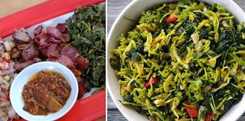 - Rebus daun singkong dan jantung pisang dengan metode yang sama.