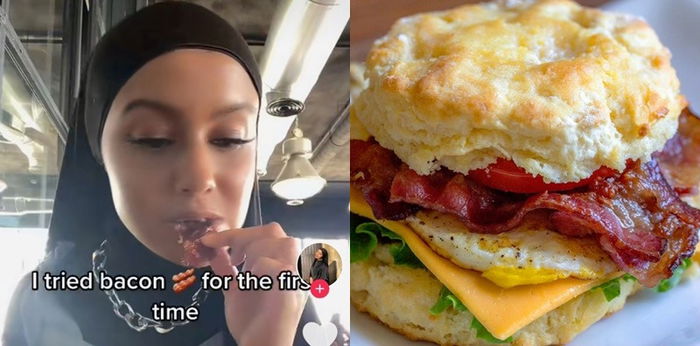 “Saya mencoba bakon untuk pertama kalinya,” tulisnya dalam video tersebut.