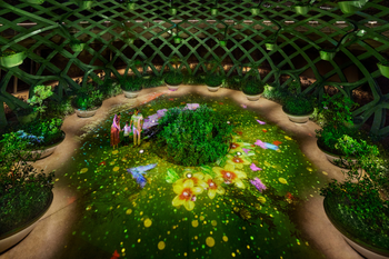 Bersiaplah terpana saat berada di taman Tactile Trellis. Saat Anda melambaikan tangan di titik-titik tertentu, akan bermunculan mahluk-mahluk dari hutan tropis.