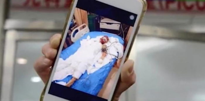 Sang anak yang dilindungi oleh ibunya ini juga mengalami luka bakar parah dan kehilangan penglihatannnya. Dia sempat dirujuk ke beberapa rumah sakit hingga akhirnya dirawat di NICU di rumah sakit Shenyang.