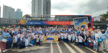 Pada pukul tujuh pagi, para peserta sudah bersemangat berkumpul di Ratu Plaza. Anak-anak memakai kaos seragam dan terlihat tidak sabar berkeliling Jakarta menggunakan open top bus!