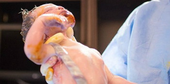 Wajah bahagia tim medis saat melihat anaknya lahir.