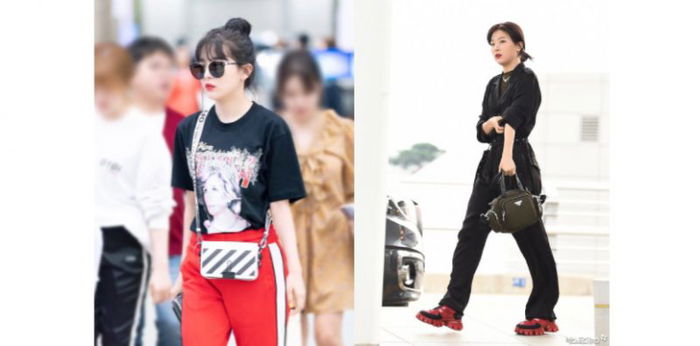 Seulgi mengenakan salah satu pakaian bandara paling keren hingga saat ini pada 27 September 2019. Dia memasangkan jumpsuit Aimons hitam dengan sepatu kets Prada merah yang menarik dan tas kargo dari merek yang sama.
