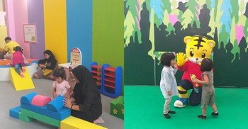 Selain bermain dan belajar, anak-anak juga bisa berinteraksi langsung, menari dan bernyanyi dengan maskot pendidikan prasekolah nomor satu di Jepang yaitu, Shimajiro.