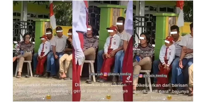 Dalam penggalan rekaman video yang beredar, tampak siswa tersebut hanya berdiri bersandar di dekat orang tuanya sembari melihat siswa lainnya berbaris.