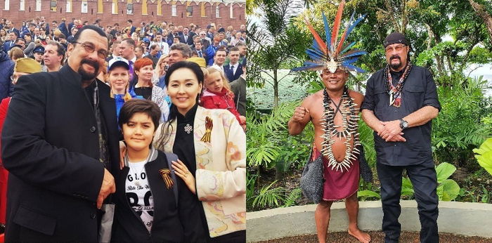 “Aktor senior Steven Seagal beberapa waktu lalu sempat mengunjungi suku Dayak di Kalimantan. Bahkan aktor yang sudah malang melintang di dunia perfilman Hollywood itu disambut hingga mencium mandau, mengagumi kekayaan budaya yang ada di Kalimantan,” tulis keterangan akun itu.