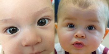 - Adanya perubahan warna di sekitar pangkal hidung bayi