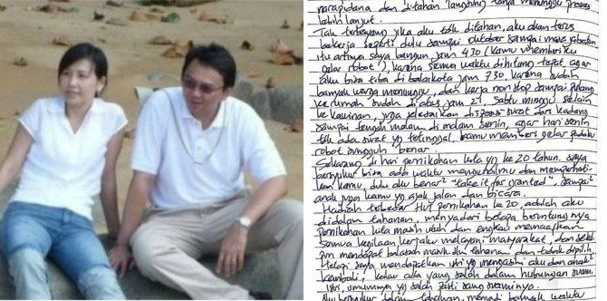 Dipenjara tak menghalangi Basuki Cahaya Purnama alias Ahok untuk sampaikan pesan cinta pada sang istri, Veronica Tan. Surat cinta Ahok pada istrinya ini adalah bukti bahwa jeruji besi tak akan pernah bisa mengurung cinta yang besar dari suami pada istrinya.