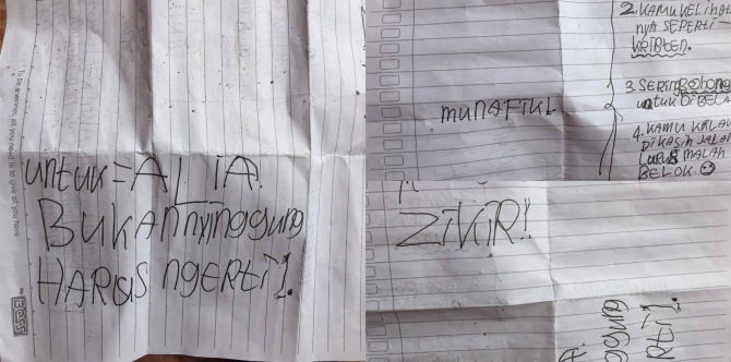 Anakku dapat surat kaleng. Isinya begini: