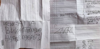 Seorang ayah bernama Kika Syafii mengunggah sebuah foto surat kaleng yang ditujukan kepada anaknya, Alia. Surat kaleng tentang Pilkada Jakarta tersebut berisi peringatan dan kebencian yang sangat jauh dari topik anak-anak.