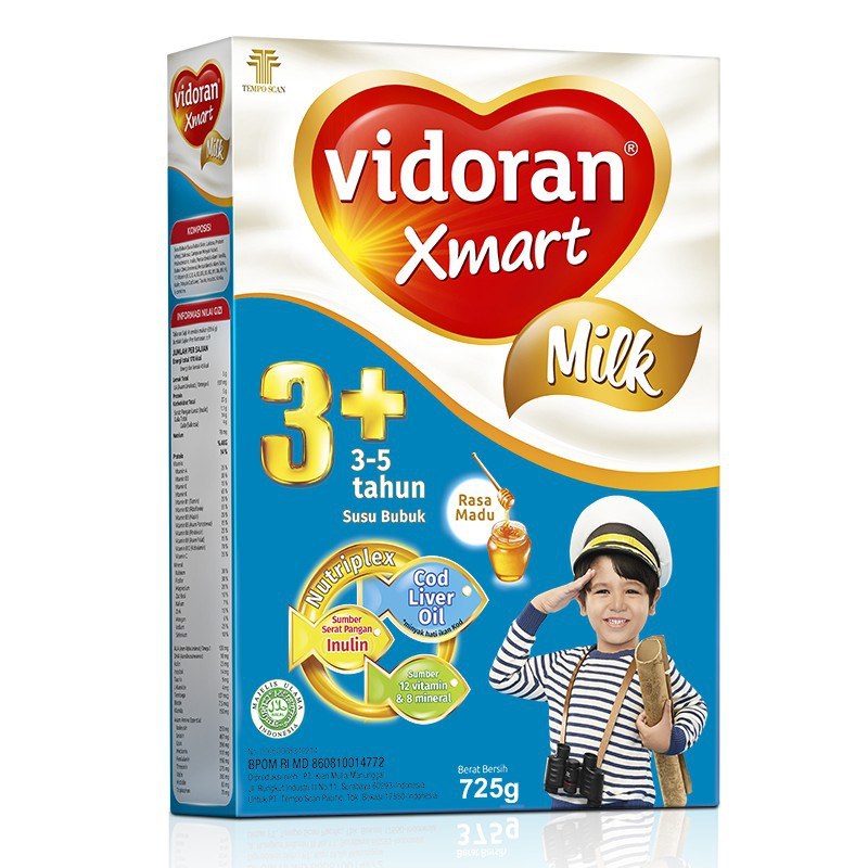 Rekomendasi susu yang bagus untuk anak 3 tahun lainnya ada dari Vidoran Xmart 3+. Susu ini dilengkapi minyak hati ikan kod yang kaya dengan omega 3, yang mengoptimalkan perkembangan otak anak.