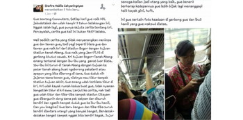 Status yang ditulisnya tersebut berisi cerita dirinya saat tidur di KRL, yang kemudian dibangunkan oleh petugas kereta karena ada ibu hamil, ia pun jadi kesal karena harus berdiri di kereta yang penuh sesak.