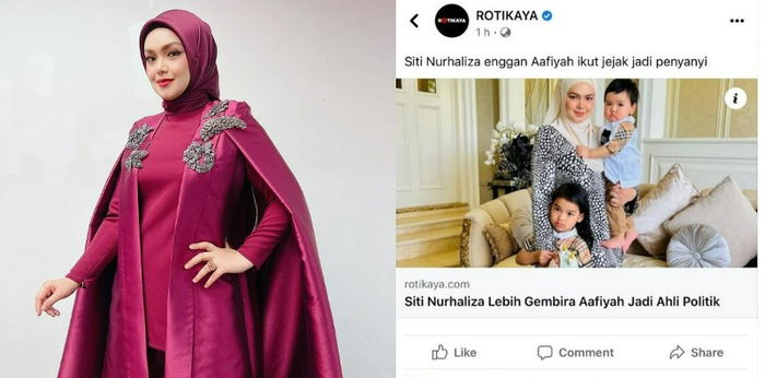 “Judul berita ini sangat berbeda dengan jawaban saya. Saya tidak pernah menyebutkan bahwa saya akan lebih bahagia jika Aafiyah menjadi politisi seperti yang tertulis,” jelas Siti Nurhaliza.